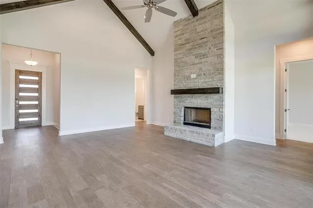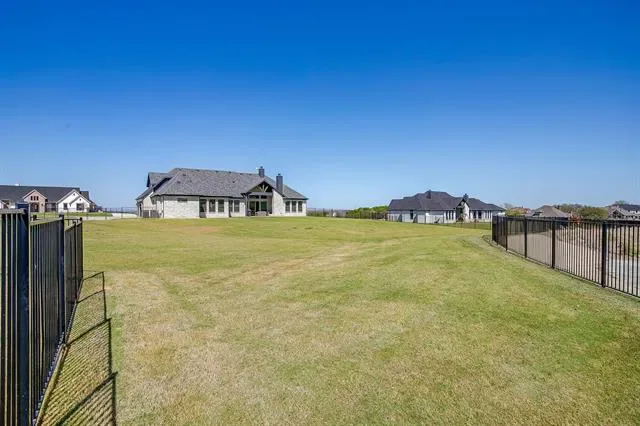 No need to wait on New Construction! Built by Elmwood in 2023, this barely lived in 4 bedroom, 3 bath home sits on one acre, PREMIUM lot with incredible pond views in ALEDO HEIGHTS! Well planned and beautifully appointed, this timeless transitional offers mostly one story living with split bedrooms, 2 living spaces, and an office on the first floor! Upstairs features a flexible bonus room. Thoughtful custom craftsmanship and quality finishes throughout include wide plank light wood floors, cased doors with modern trim, beautiful built ins and abundant storage throughout! Open concept living room with vaulted ceilings, warm wood beams and handsome fireplace seamlessly connects to STUNNING KITCHEN! Designed for entertaining this kitchen features quartz counters, gas range, pot filler, double ovens, recessed tongue and groove ceiling, and walk in pantry! Primary suite with spa like bath with separate vanities, free standing tub, huge shower, and it connects to the laundry room! The covered patio with fireplace is the perfect place to relax and enjoy the pond views and expansive backyard with plenty of space to add a pool! Oversize 3 car garage with 8 foot doors and large storage closet. NO MUD, NO PID Tax. Co-op well, septic, and propane. SEE TD for Features!