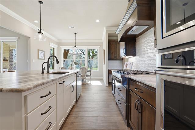 The chef’s kitchen offers beautiful cabinetry, ample storage, a walk in pantry, and an oversized island perfect for gathering with family and friends. The open layout flows seamlessly into the living and dining areas creating an ideal space for hosting and everyday living.