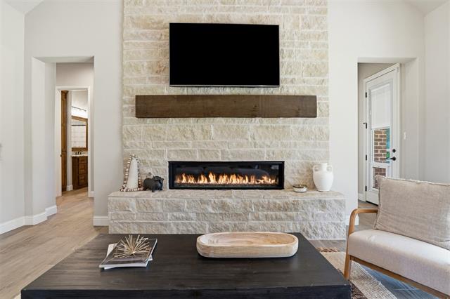 Step inside to a bright and open floor plan designed for both everyday living and entertaining. The spacious living room features a soaring cathedral ceiling, a full stone linear gas fireplace, and large sliding glass doors that flood the space with natural light while showcasing scenic countryside views.