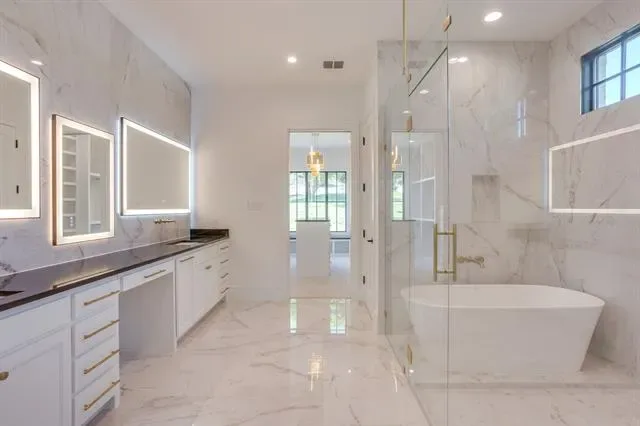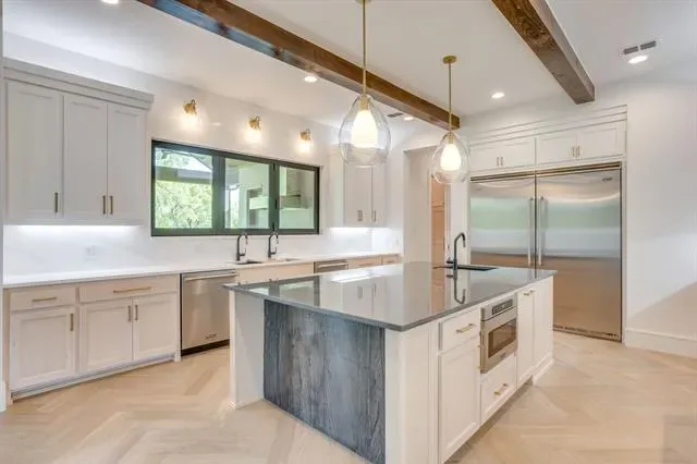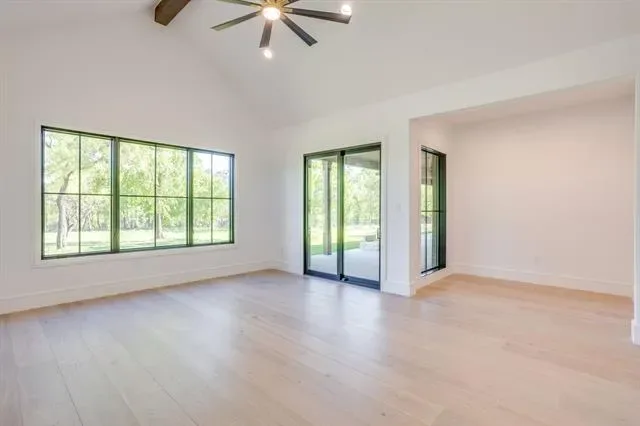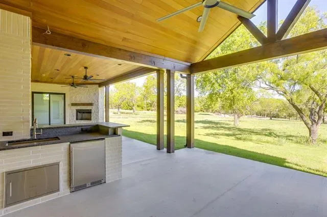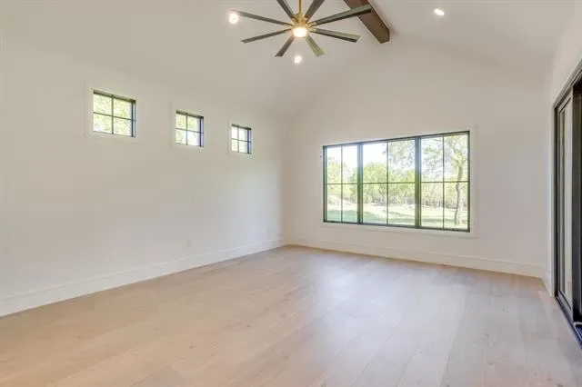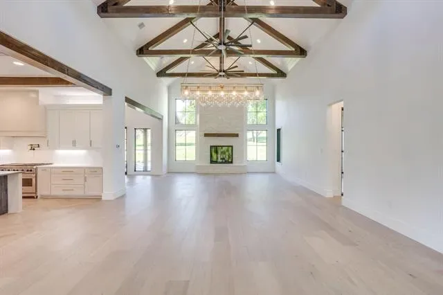 Experience luxury living at its finest in this meticulously crafted custom home where no detail has been overlooked. Located in Bear Creek Estates within the highly sought after Aledo ISD, this home is built with pride and precision, showcasing exceptional quality and timeless design in every detail. Enter through custom steel pivot doors onto beautiful White Oak engineered wood floors that flow seamlessly through an open-concept floor plan accented by rich wood beam details throughout. The gourmet kitchen is a true showpiece, complete with quartz countertops, a Viking appliance package including a built-in refrigerator, and a spacious butler’s pantry for effortless organization and entertaining. The living room exudes warmth and sophistication, highlighted by a real wood beams and a stunning Austin White Stone fireplace that serves as the perfect focal point for gatherings. Expansive sliding glass doors open to a large covered patio with a fully equipped outdoor kitchen, extending your living space into the serene outdoors. Each bedroom is generously sized and features custom closets, offering both style and practicality. Modern efficiency meets elegance with three tankless water heaters and spray foam insulation for year-round comfort. Set on a large, private lot backing to Bear Creek, this property offers a tranquil setting with scenic views and serene privacy, an ideal retreat from the everyday. From the finishes to the fixtures, every element has been intentionally chosen, making this home a true reflection of craftsmanship and care.