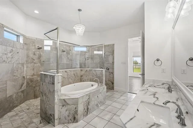 Built-in Wine Cooler, Cathedral Ceiling(s), Chandelier, Decorative Lighting, Double Vanity, Eat-in Kitchen, Flat Screen Wiring, Granite Counters, High Speed Internet Available, In- Law Suite Floorplan, Kitchen Island, Open Floorplan, Pantry, Smart Home System, Vaulted Ceiling(s), Walk- In Closet(s)