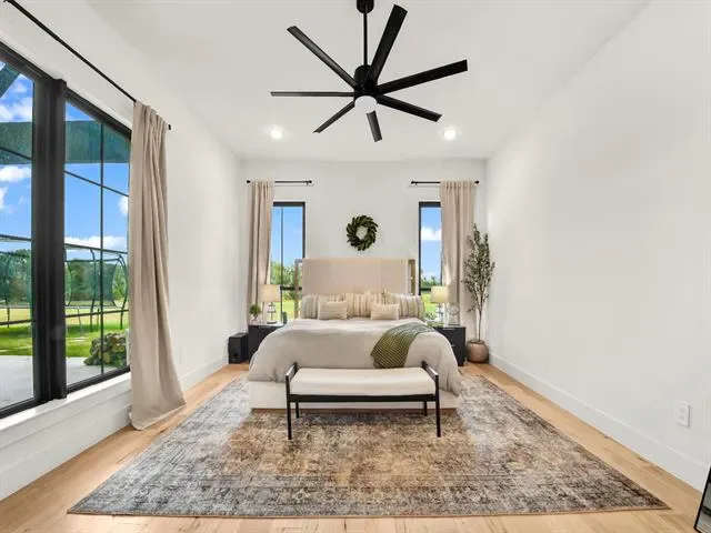 Welcome to a stunning custom home in the heart of Aledo ISD! Nestled on a spacious 2.4-acre lot in an exclusive gated community with only 21 homes, this beautifully designed 4-bedroom, 3.5-bathroom custom home offers the perfect blend of luxury, functionality, and room to grow. Step inside to discover soaring vaulted ceilings in the open-concept living room. The chef’s kitchen includes Cafe appliances that will stay with the home. Wide plank hardwood floors and beautiful tile throughout mean no carpet to clean. Enjoy game nights or movie marathons in the impressive game room, complete with a modern glass roll-up garage door that opens to the outdoors—blending indoor comfort with fresh-air fun. A large office with built in cabinets and natural light is the perfect space for those who work from home or need to study. The large sliding glass doors in the living room make outdoor living a breeze as you step out to your covered patio featuring a cozy fireplace, island and built-in fridge—ideal for entertaining year-round. The oversized driveway not only avoids those pesky parking problems, it also leads to a spacious 3-car garage with 8'' garage doors and a poured 40'' x 60'' concrete pad ready for your future workshop or sport court. Photos showing shop and sport court are AI generated to give an idea. The shop and sport court are not currently on property, only concrete pad. Be sure to check out the go kart track at the back of the property, which is fun for kids of all ages! Energy efficient features include a full spray foam encapsulation and 2 high-efficiency propane tankless hot water heaters. The upgrades on this home are amazing, you have to see it for yourself! Don’t miss your opportunity to own this one-of-a-kind property that offers space, style, and room to expand. Community map, Shop Plans and floorplan are available in Transaction desk or please request via email or text. Seller is willing to remove concrete pad and replace with sod if buyer would prefer.