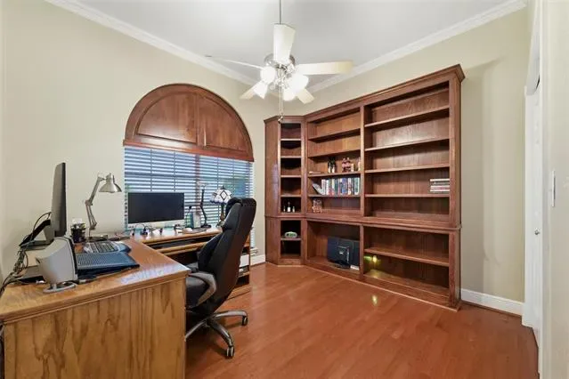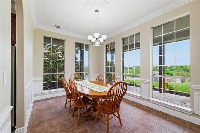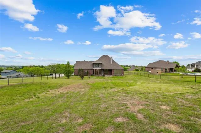 Beautiful, custom home on one acre in Hills of Aledo subdivision. This home welcomes you up a long driveway to a large covered, stone, front porch that is perfect for watching the sun rise. The beautiful, double wood doors welcomes you into the entryway. This home has 5 bedrooms, each with a large, walk in closet and ceiling fans. It has a spacious living room with vaulted ceilings & a wood burning fire place and beautiful windows looking out onto the back patio. The chef’s kitchen has 2 ovens, a walk in pantry with room to put a freezer, beautiful stained cabinets and a double sink. There are tons of windows that provide natural light throughout the home. Master bedroom has stunning Tray Ceiling and a wall of windows overlooking the private back yard. The master bathroom has a luxurious spa tub and a separate shower, as well as a large vanity with double sinks. Downstairs has 3 bedrooms, one is currently being used as a home office with built in book shelves. There is also a beautiful, window filled dining room and large, separate breakfast area. The laundry room is right off the kitchen and has its own private, utility sink. There is a closet across from laundry that leads to great understair storage. The carpet upstairs is all brand new. There are 2 spacious bedrooms upstairs and a game room with a private balcony, patio overlooking the back yard. Upstairs there is also access to multiple storage areas in the attic. Home has been completely repainted on the inside and out. This home has been meticulously cared for. The back yard is completely fenced and has a covered back patio with ceiling fan. The perfect home for entertaining. There is also an assumable 4.5 % Va loan option for the buyer. No city taxes or water bill.