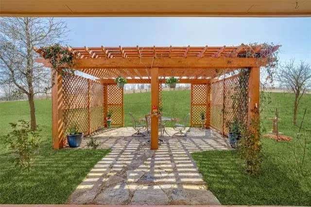 The private primary suite offers a spa-like retreat with a large walk-in shower, garden tub, separate vanities, and built-in cabinetry. All bathrooms are all accented with granite countertops. Additional features include an optional study-office, a versatile game room, and high-quality flooring featuring a blend of wood, ceramic tile, and carpet. Outside, enjoy the Texas sunsets from the covered porch overlooking your expansive backyard and gazebo. Buyer and buyer’s agent to verify all measurements, schools, and information herein.