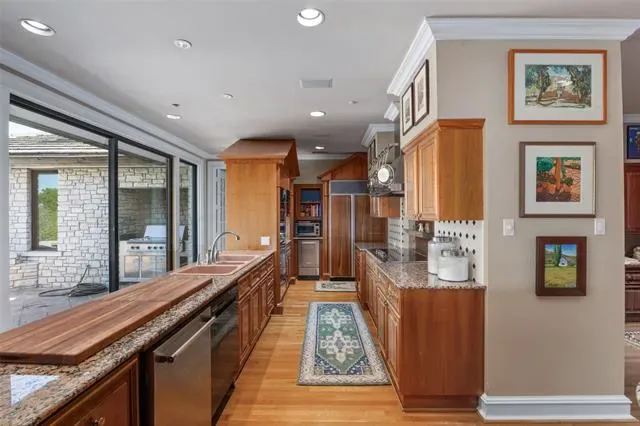 This single-level estate offers an exceptional blend of timeless design and modern luxury on one of Aledo’s most coveted and private streets. The home is filled with natural light, featuring three wood-burning fireplaces, a concrete tile roof, brand-new windows, and a primary suite with its own fireplace, private study, and spa-style bath. Flooring throughout combines wood and carpet for warmth and style. Outdoor living is unmatched with a resort-style pool and cabana, patios, multiple seating areas, and a pool house with a bathroom and storage. A separate 2,700 sq ft guest house includes a full kitchen, laundry, wine room, full bath, and 4-car carport, perfect for multi-generational living or hosting. The property also includes an upgraded water system with Trinity and Paluxy water wells, and abundant storage. Set on 8.77 acres with an optional adjacent 1.97 acres, this estate combines privacy, thoughtful architecture, and luxury living in the Aledo acclaimed school district.