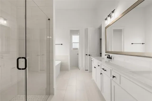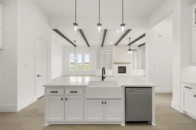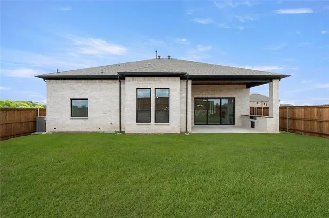 MLS# 21005229 – Built by Sandlin Homes – Ready Now! ~ Our Augusta plan with 4 bedrooms, 3 bathrooms, a study, beamed ceilings in the living area, built ins in the living room, bay windows in the owner’s bedroom, a covered patio with an outdoor grill, and a 2-car garage. Beautifully designed with 3cm quartz countertops and granite at the outdoor grill, painted cabinets, extended upper cabinets with glass, wood hood vent, black trim windows, metal roof, upgraded carpet, tile, and engineered hardwood flooring, matte black fixtures, herringbone kitchen backsplash, and checker pattern utility room floors!