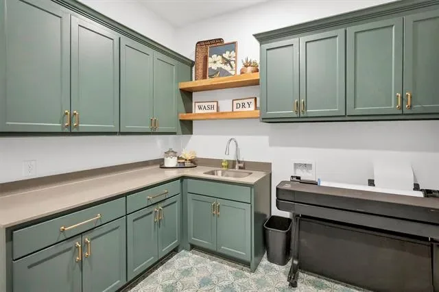 The chef’s kitchen showcases custom cabinetry, designer finishes, and an oversized island that anchors the space while opening seamlessly to the living and dining areas. A formal dining room provides an elegant setting for gatherings, while the private study or library offers a quiet retreat for work or reading.