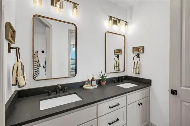 The primary suite is a true sanctuary with a spa-inspired bath and a custom closet complete with a built-in makeup vanity. Upstairs, you’ll find a dedicated media room plus an additional sitting or bonus room, creating flexible space for relaxation, recreation, or hobbies.