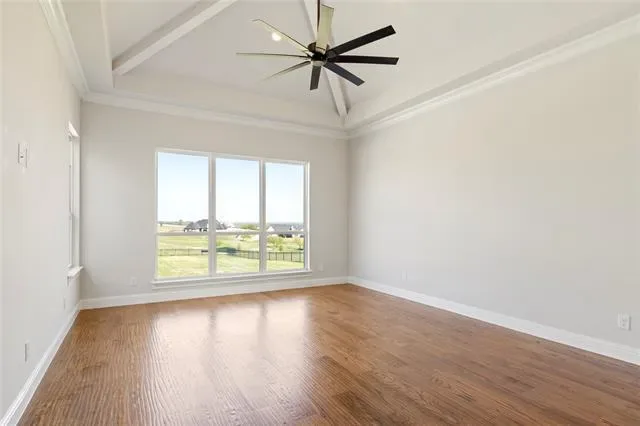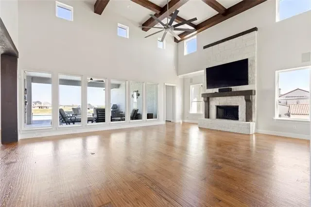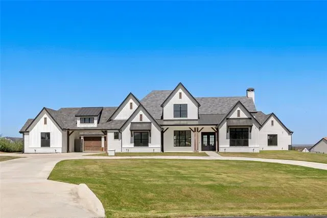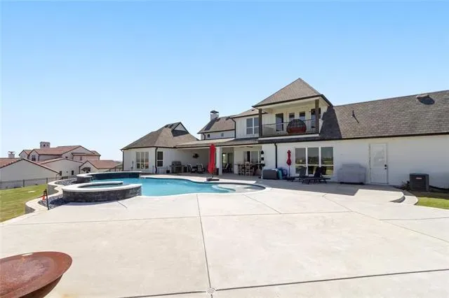 Welcome to an extraordinary estate in the gated La Madera neighborhood, where luxury living meets wide open Texas skies. Situated on 2.68 acres, this stunning 5,000 square foot home offers 5 bedrooms, 3 full baths, and 2 half baths, thoughtfully designed with both elegance and functionality in mind. From the moment you arrive, the curb appeal makes a statement with its grand presence and expansive driveway offering ample parking for the car enthusiast. Inside, the open floor plan is filled with natural light and showcases exceptional attention to detail, including ceiling beams, custom built ins, and a beautiful stone fireplace anchoring the main living room. The chef’s kitchen is truly the heart of the home, featuring an oversized island, stainless steel appliances, built in refrigerator, double ovens, gas cooktop, a waterline and plumbing for ice maker or wine cooler, butlers pantry, and a spacious walk in pantry. Entertain effortlessly with seamless flow into the main living and dining areas. The first floor primary suite is a private retreat with vaulted ceilings, an oversized walk in closet, and a luxurious spa like bathroom complete with separate vanities, a soaking tub, large tiled walk in shower, and dedicated makeup vanity. A first floor guest suite provides comfort and privacy for visitors. Designed for both relaxation and recreation, this home offers three living spaceson the first floor the gameroom features a wet bar, beverage fridge, a dedicated study, exercise room, and media room. Upstairs, you’ll find two additional bedrooms, each with its own ensuite baths, along with a spacious gameroom and balcony overlooking the resort style pool. Step outside to your private backyard oasis where the pool and expansive patio area create the perfect setting for entertaining or enjoying peaceful sunsets over the acreage.