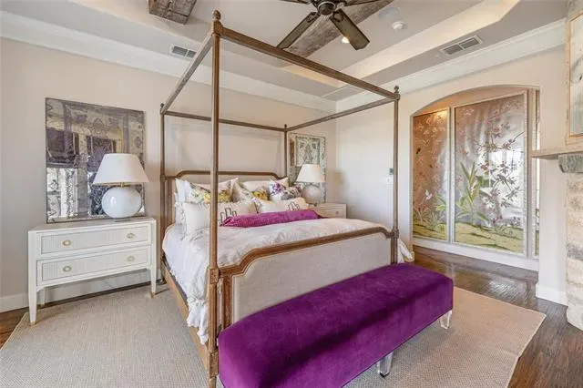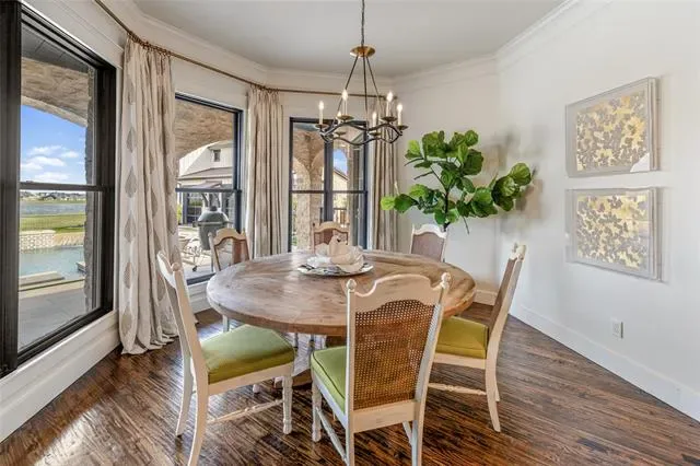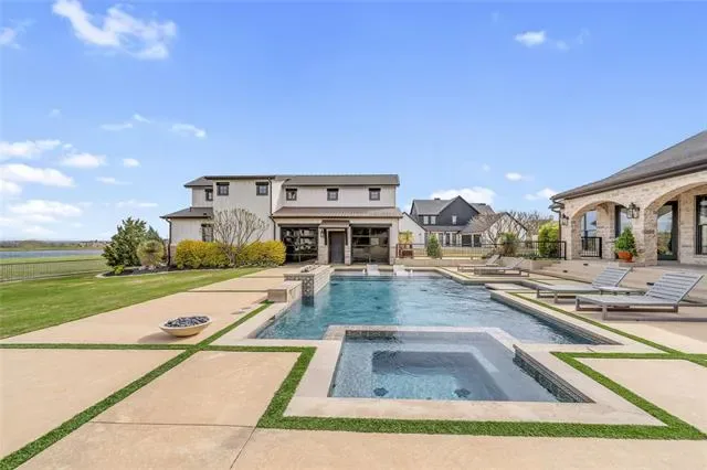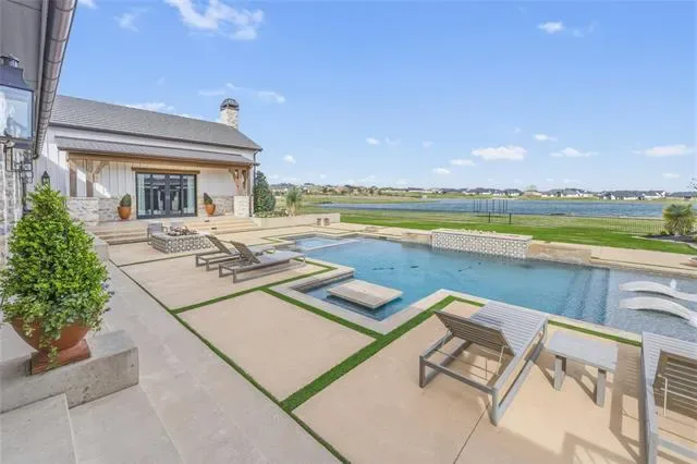 Step outside to a breathtaking backyard retreat designed to feel like a private resort. The custom pool showcases hand-painted Greek key tile, an in-pool bar table, and a beautiful lueders stone patio, all surrounded by turf landscaping and seamless wrought iron fencing. The outdoor kitchen, with Lynx built-in BBQ, makes hosting under the Texas sky effortless.