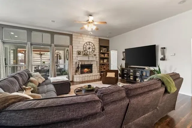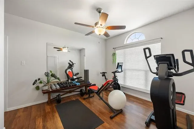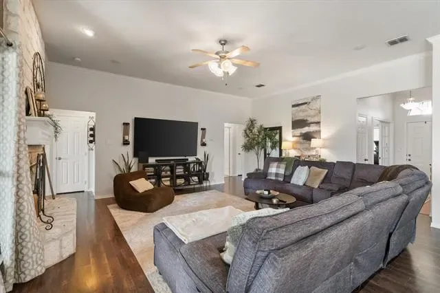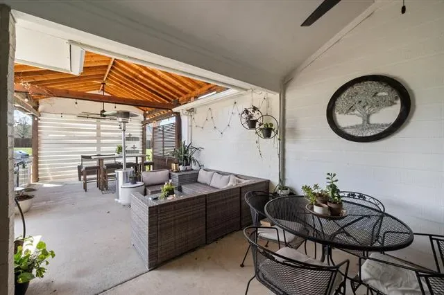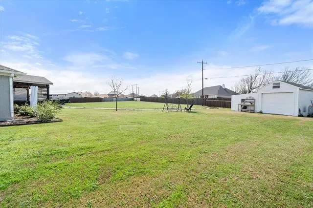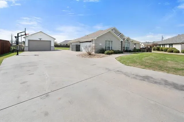 Welcome to 105 Meadow Glen Ct, a beautifully maintained property on a spacious 0.73-acre lot, offering a blend of comfort, functionality, & versatile indoor & outdoor living spaces. With 4 bedrooms, 2 full bathrooms, and garage space for up to 4-cars, this home provides a well-designed layout suited for a variety of lifestyles. Inside, an open-concept floor plan is enhanced by abundant natural light, creating an inviting atmosphere. The main living area is anchored by a fireplace, adding warmth & character while seamlessly connecting to the kitchen and dining spaces. The kitchen is designed for both style & practicality, offering a center island, SS appliances, & ample cabinetry. Whether preparing meals or hosting gatherings, this space provides both efficiency and flow. Just off the main living area, a separate utility room with built-in cabinetry and countertops adds convenience for laundry & organization. The primary bedroom serves as a private retreat, featuring vaulted ceilings that enhance the sense of space. The en suite bathroom includes dual sinks & a spacious walk-in shower with a rain shower head, creating a spa-like experience. Step outside to enjoy the covered outdoor kitchen which provides an excellent space for entertaining, dining, or relaxing. The property also includes a separate workshop with electricity that accommodates up to two vehicles and offers flexibility for projects or storage. A separate storage shed adds even more functionality for tools, equipment, or seasonal items. Situated on a generous 0.73-acre lot, the property provides plenty of room to enjoy outdoor living, recreation, & additional possibilities, all while maintaining a sense of space & privacy. Conveniently located in Aledo with access to local amenities, shops, dining, and major roadways, this property combines practical features with comfortable living in a desirable setting. Schedule your private showing to explore everything 105 Meadow Glen Ct has to offer.