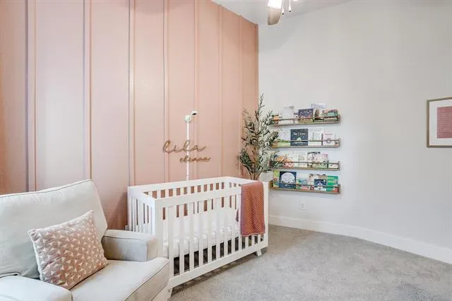 The primary suite includes bay windows, a spa-style en-suite bath, and generous storage. Guest bedrooms feature custom board-and-batten accent walls. An additional storage room adds functionality where you need it.