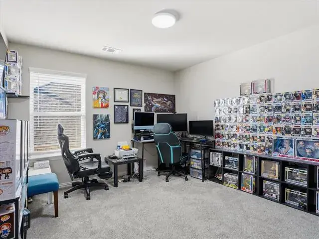 The primary suite is located on the main floor and offers privacy from the secondary bedrooms, along with a spacious ensuite bathroom and walk-in closet. A separate flex room near the front of the home works well as a home office, playroom, or additional living space. Upstairs, a large loft provides a second common area, surrounded by secondary bedrooms that allow for separation and comfort.