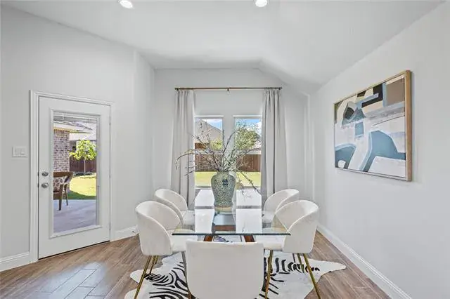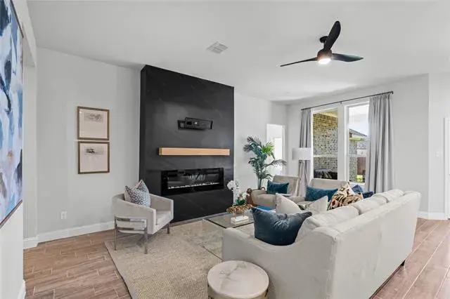 The club house is awesome, one of the best master planned communities available in this area. Built by Impression Homes in 2022, this home is like new, impeccable, very lightly lived in and move-in ready. The home is staged so that you can see the livability and open floor plan designed for entertaining and family gathering. A truly unique and beautiful focal point of the living room features a built in electric fireplace resting on a stunning black wall with a TV mount above the fireplace designed by the homeowner and also provides optional additional heat to the room. The house also has an additional larger covered patio area across the back giving you nice space for grilling or relaxing. The home location is just 2 blocks from the new Elementary school. The large primary bedroom features a bay window area proving a nice additional seating area. Morningstar, welcomes you with one of the most spectacular entrance of any neighborhood with a fishing lake, walking and bike paths, the pools and playground. The MUD notice is in the transaction desk for review.