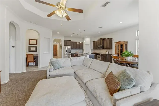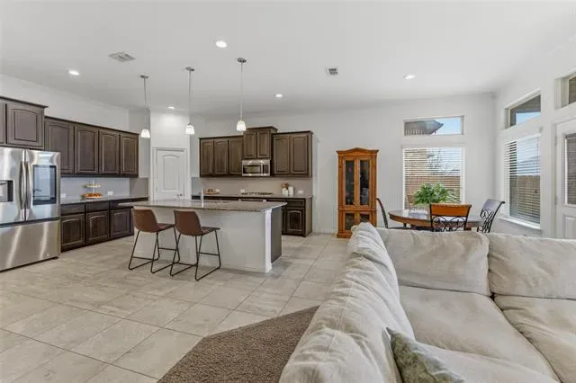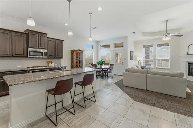 Experience refined Texas living in this beautifully appointed home in Morningstar. Thoughtfully designed with soaring ceilings, abundant natural light, and an open-concept layout, the home offers a seamless flow ideal for both everyday living and entertaining.