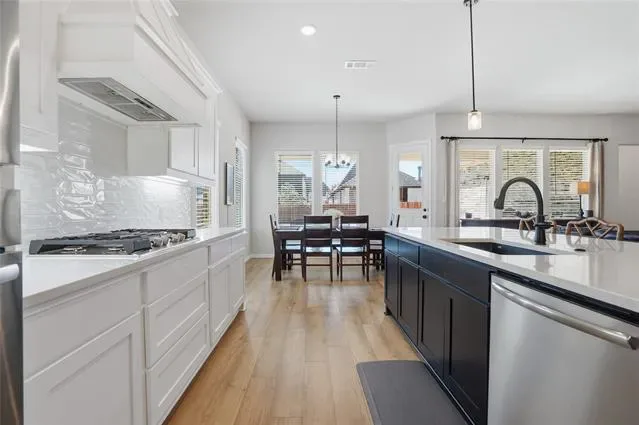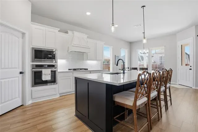 Welcome to a lifestyle full of amenities, social activities, and easy living. The most desirable floor plan in Morningstar is now available. Recently built by Riverside Home Builders, this 5 bedroom home feels brand new and is situated at the front of the neighborhood and down the street from amenity central. This home is truly an ideal layout and location. Walk in to a spacious and bright foyer that guides you to an office, guest bedroom, full bathroom, and laundry room before you enter the open concept kitchen and living. This blends the perfect balance of an open space while creating a grand entrance. The primary bedroom is privately located off the living room creating a quiet sanctuary and is equipped with a large ensuite with a separate tub, shower, and an overside closet. On the other side of the living resides two other guest rooms, a full bath, and storage closets. Upstairs is an idyllic layout for a guest or in law suite, with a huge flex space that would make a wonderful play area or movie room, nicely separated from the rest of the home. Enjoy your backyard with a covered patio right off the dining to make entertaining easy. Enjoy living close to the exemplary Aledo schools and the numerous amenities that Morningstar has to offer including pools, sport courts, trails, parks, stocked pond, and more! This floor plan is no longer being offered in new phases.