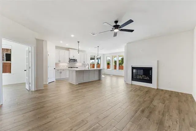Estimated October 2025 completion! Ask us about our Trade In Trade Up program, we can buy your home! From cooking to dining to relaxing by the fire, this continuous design lends itself to entertaining for all occasions. As you walk through the foyer, to the left, the second and third bedrooms are perfectly situated for a private guest getaway. On the right, utilize the flex room for a home office, craft room or play area for young kids. This unique space offers the chance to customize your home to fit the needs of your family. Continuing through to the open kitchen, the extended countertops and island are the ideal workspace for anything from a simple family dinner to a culinary masterpiece. A walk-in pantry with two walls of storage means maximum space for all your snacks and ingredients. Situated in the back corner, the owner’s suite is the epitome of space and comfort. With a door right off the family room, this bedroom gives you a lot of natural light and easy access to the outdoor covered patio. A double-sink vanity means you’ll never have to share space again.