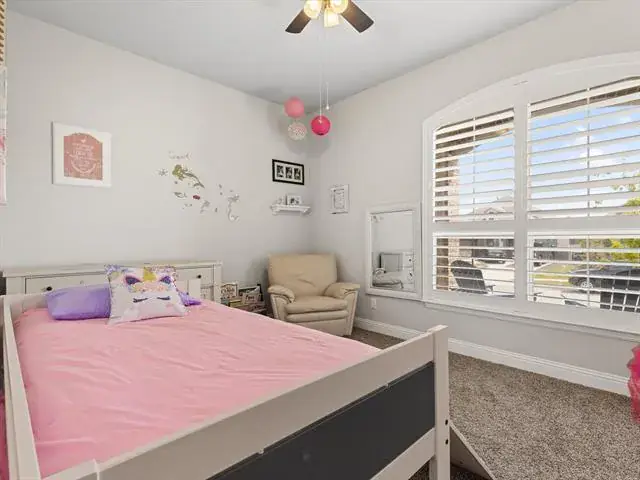Upstairs, a large bonus room provides the ultimate setting for a game room, media space, or family lounge, complete with a convenient half bath. Outside, the oversized backyard features a covered patio perfect for dining al fresco or simply unwinding outdoors.