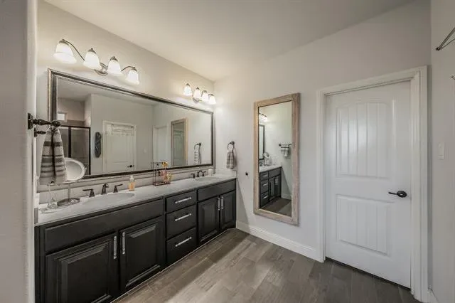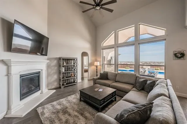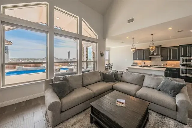 Welcome to your spacious retreat in Morningstar, located in the highly sought-after Aledo ISD. Situated on a large corner lot with an elevated position, this home offers a level of privacy that’s hard to find. Step outside to your own backyard escape—complete with a gas-heated pool and expansive deck, perfect for year-round enjoyment and entertaining. Inside, oversized windows flood the home with natural light while showcasing views of the pool and surrounding landscape. The kitchen blends style and function with white quartz countertops, rich wood cabinetry, a farmhouse sink, and designer pendant lighting—creating a space that feels both timeless and inviting. Wood-look tile flooring throughout the main living areas and bathrooms offers durability and easy maintenance, ideal for everyday living. Upstairs, one of the bedrooms has been thoughtfully converted into a private ensuite, offering flexibility as a second primary suite or guest retreat. Living in Morningstar means access to resort-style amenities, including two pools, an amenity center, basketball court, soccer field, fishing ponds, dog park, and a full-time Lifestyle Director coordinating events throughout the year. This home offers the perfect blend of space, functionality, and community living—with a layout and setting that truly stand out.
