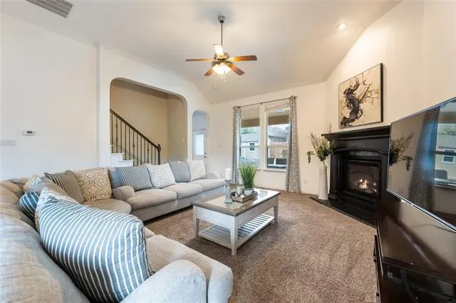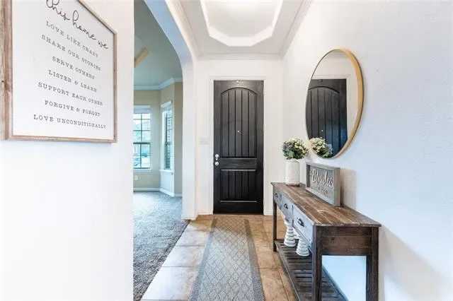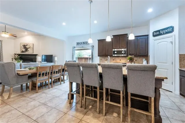 Spacious & beautifully designed, this corner lot home offers the layout, beauty, & functionality you are searching for in Aledo. A welcoming entry with tile flooring, tray ceiling detail, & arched architectural accents leads into an open living area with a corner gas fireplace & natural gathering space. The kitchen is built for both everyday living & entertaining with granite countertops, a large island, abundant wood cabinetry, tile backsplash with mosaic accent, gas cooktop, built-in oven, walk-in pantry, & adjacent dining area. First floor study with bay window & crown molding provides the perfect work from home space or versatility to be used as a formal living, or playroom. The primary suite is tucked away on the first floor and features a tray ceiling, spacious bath with dual sinks, large garden tub, walk-in shower with bench, & a generous walk-in closet with direct access to the utility room. Upstairs offers a large game room, three additional bedrooms including one with ensuite bath, for comfortable living. Outside, enjoy a covered patio ideal for relaxing or hosting, plus a fenced backyard with raised garden bed & storage building. Located on a desirable corner lot with full gutters, sprinkler system, & extended side yard, this home delivers space, comfort, & versatility. Enjoy the Morningstar amenities & highly desirable Aledo ISD, with just a short commute to Ft. Worth.