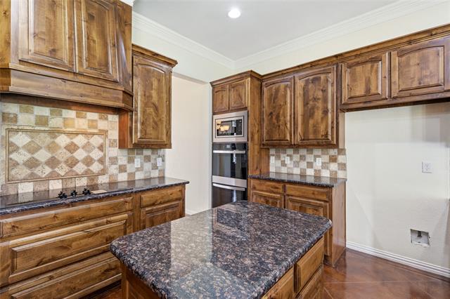 Stunning retreat tucked inside Oakcrest Hills Estates gated community in highly acclaimed Aledo ISD.Situated on 1.6 picturesque acres,mature trees create privacy & a welcoming approach.3,816 sqft custom home blends timeless Texas character with modern comfort.Grand covered front porch with stately pillars,Austin stone accents & decorative shutters sets the tone for what awaits inside.Step through the ornate metal double front doors with elegant scroll-work into a warm & inviting entry where the formal dining room & striking wrought-iron staircase greet guests with style.Designed for everyday living & entertaining,open-concept living,kitchen & breakfast areas are filled with natural light from soaring windows showcasing peaceful backyard views.Living room features knotty alder built-ins,surround sound speakers & Propane gas fireplace.Chef-inspired kitchen offers knotty alder cabinetry,granite countertops,island with electrical outlet,double ovens,microwave,electric cooktop & spacious walk-in pantry tucked beneath the 2nd staircase.Multiple dining & living spaces provide flexibility for entertaining or everyday life.Downstairs also includes a private office-study with a clever built-in desk hidden in the closet,allowing the room to serve multiple purposes.Stained concrete floors throughout the first level add durability & style.Primary suite is a serene retreat overlooking the backyard with abundant natural light.En-suite bath features a soaking tub,large walk-in shower, & two walk-in closets.Upstairs are 3 bedrooms & a 2nd living area perfect for a game room,media room or play space.2 bedrooms include built-in desks,storage & attached baths,while another offers private access to the expansive balcony.Upstairs is finished with new luxury vinyl plank flooring.Outdoor living is just as impressive.Large covered back patio features a propane fireplace & generous space for relaxing or entertaining. Home includes 3 AC units for zoned climate control (one recently replaced).