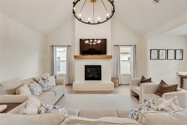 Welcome to 234 Observation Drive N in the highly desirable Parks of Aledo Bluffs community. This beautifully designed 4-bedroom, 2.5 bath home offers a functional open floor plan filled with natural light and modern farmhouse charm. The inviting curb appeal features painted brick, classic gabled rooflines, and a contemporary glass-panel front door that sets the tone for the bright and stylish interior. Inside, the main living area flows seamlessly into the dining space and kitchen, creating an ideal layout for both everyday living and entertaining. The kitchen includes stainless steel appliances, a gas range, subway tile backsplash, and a large eat-in island with pendant lighting and seating. Luxury vinyl wood-style flooring runs throughout the main living areas, adding warmth and durability. Step inside soaring vaulted ceilings, warm wood beam accents, and a bright open layout that makes the living space feel both expansive and inviting. The living room is anchored by a cozy gas fireplace with a rustic wood mantel and oversized windows that fill the home with natural light. The spacious primary suite provides a private retreat with a spa-inspired bathroom featuring dual vanities, a freestanding soaking tub, separate shower, and a large walk-in closet. Located in the sought-after Parks of Aledo neighborhood and within award-winning Aledo ISD, residents enjoy scenic walking trails, parks, green spaces, and convenient access to Fort Worth shopping, dining, and entertainment. Schedule your private showing today!