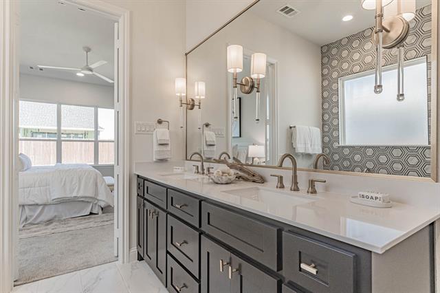 Amazing current model home ready for its first owners in coveted Parks of Aledo Lakes. Built in 2023, and never lived in, this home features over 65 thousand in upgraded features and a refrigerator, washer dryer and all window coverings. Built ins, upgraded custom cabinetry, an amazing game room with built in bar for entertainment and family gatherings, and four spacious bedrooms, all with walk in closets. The private, luxurious owner’s suite features a huge freestanding tub and separate shower with an enormous closet and designer tile and lighting to die for. Enhanced flooring is featured in every room, and designer draperies and blinds are featured in every space. Formal dining and informal island and smaller table seating in the open kitchen, living and dining make this a home to host family and friends throughout the Super Bowl season. The home was designed for a fifty foot wide site but is on a sixty foot site giving extra yard space fit for a future pool, playscape or putting green. Designer touches throughout make this a one of a kind home in a wonderful amenity filled neighborhood served by award winning Aledo ISD schools. Neighborhood features include a large green space for soccer or play immediately across the street, several parks and two lakes to enjoy fishing or just relaxing by as you walk throughout the neighborhood. Large front and rear covered patio and porch for outdoor seating and entertainment. Every detail is perfect in this model home that could be yours. The neighborhood is immediately adjacent to the highly regarded hike and bike trail known by all who enjoy outdoor activities like walking, biking and hiking. Truly a gem in a highly sought after neighborhood… Schedule your tour today.