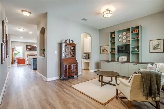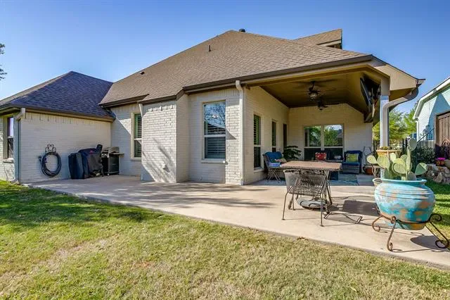 Welcome to this well-maintained 4-bedroom, 3-bath home in the sought-after Parks of Aledo, located directly across from the community’s main park. With a flexible floor plan and thoughtful updates, this home offers comfort, style, and convenience. The spacious kitchen features granite countertops, a large island with storage, gas range, glass-front cabinetry, and a built-in desk—perfect for daily living and entertaining. The inviting living area includes a brick fireplace, while plantation shutters throughout add timeless charm and privacy. The layout includes a formal dining room that can also serve as a home office or additional living space. Upstairs, the private fourth bedroom offers flexibility as a game room or flex space, complete with a full bath and walk-in closet. Recent updates include luxury vinyl plank flooring and new carpet for a fresh, modern feel. Enjoy a peaceful backyard with a covered patio—ideal for relaxing or entertaining. Conveniently located near Aledo High School, with easy access to dining, shopping, I-20, and I-30 for commuting to Fort Worth or Weatherford. Don’t miss this opportunity to own a beautiful home in one of Aledo’s most desirable communities!