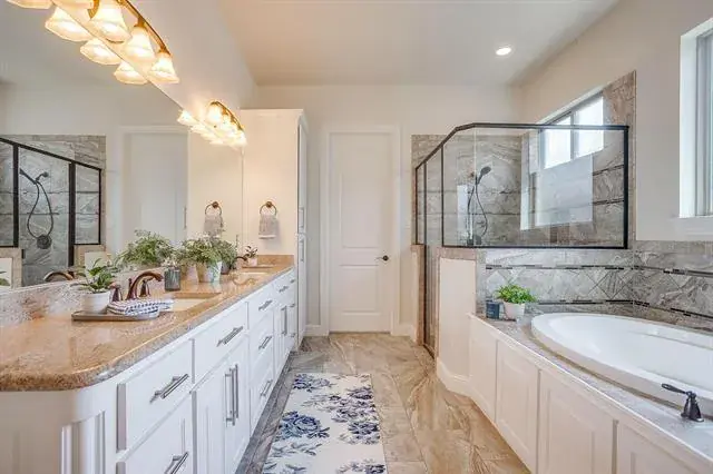Step into this 1.5 story build with a fantastic floorplan and beautiful custom details throughout making each space an enjoyable place to relax or entertain! The split bedroom layout offers a powder bath for house guests and then a shared bathroom for the 2nd, 3rd and 4th bedrooms with a clever design making it so that each bedroom has access to their own sink. The first floor primary suite is a retreat with a vaulted ceiling, huge walk in closet, separate shower, soaking tub and double vanity. The garage includes space for a 3rd car (tandem) or simply oversized storage or parking for that extra large truck or SUV! The mud room entry is convenient and the separate laundry room is especially functional with countertop, cabinetry storage and freezer space too. The backyard is a nice size for the neighborhood with a covered patio, gas hookup for a future outdoor kitchen or heated pool. The front, formal dining room is a welcome entry with a view to the main living room and backyard through the archway. Included between the dining and kitchen is even more storage between the butler’s pantry and the large walk-in pantry. The kitchen island provides prep space and seating, along with a breakfast dining space with views to the backyard. The living room is an incredible space with it’s focal gas log fireplace, coffered ceiling, plantation shutters, and built-in storage. Upstairs is a walk-out basement, large storage closet and dry bar nestled within the 2nd living or game room, which could also be converted into a 5th bedroom or home office as desired. There is so much to love here like the engineered hardwood flooring, 8 foot solid doors, high ceilings and natural gas fixtures making it also energy efficient. Welcome home!