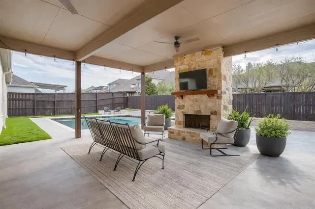 Stunning custom home located in the desirable Parks of Aledo community. This beautifully designed property features 4 bedrooms, 3.5 bathrooms, a spacious game room, dedicated office, and a POOL! The moment you step inside, you’re greeted by upscale and thoughtful details. Handscraped hardwood floors flow throughout the first floor, while the foyer showcases a striking coffered wall. The office is spacious and has tons of natural light. The kitchen features a large island, tons of cabinet space, and beautiful finishes. The primary bedroom is located downstairs with an impressive ensuite bathroom. Upstairs, you’ll find a well-planned layout with split bedrooms—two sharing a bathroom on one side, and another with its own private bath on the other, along with a huge game room located between them! Outside is an OASIS! A large covered patio with a wood burning fireplace, plus extra deck space, and a huge pool and spa make this the perfect home for entertaining. Located on one of the most coveted streets in the neighborhood and close to the highly acclaimed Aledo ISD schools. This home was just painted and the carpet is BRAND NEW! Sellers are including golf cart with acceptable offer!!