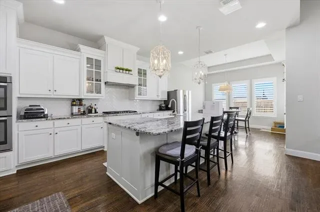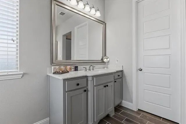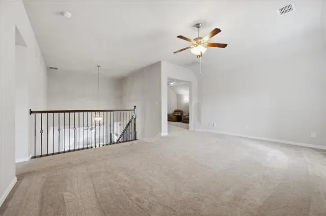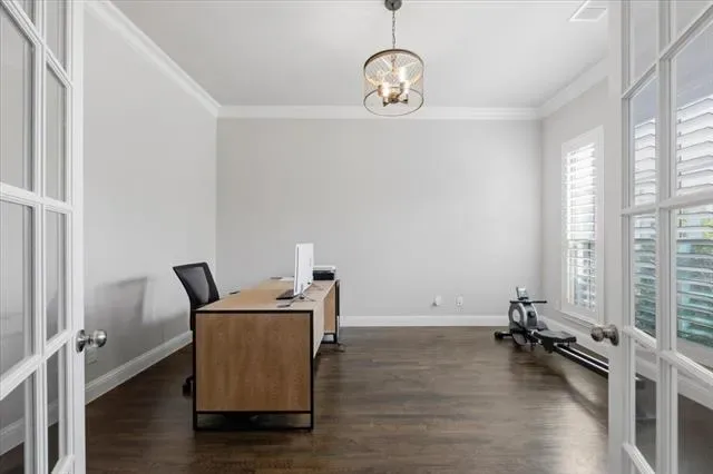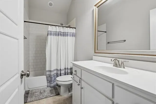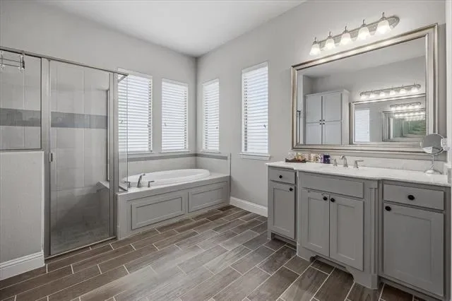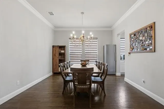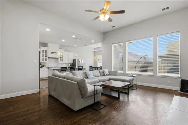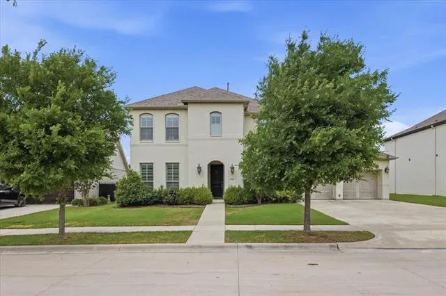 Located in Parks of Aledo, this home stands out for its layout, room count, and overall livability. The main living area is open with elevated ceiling heights and anchored by a large family room with gas fireplace, flowing directly into the kitchen and breakfast area. The kitchen centers around an oversized island with plenty of storage and prep space, and is designed to stay connected to everyday living. A dedicated dining room and private office at the front of the home give you flexibility for both formal use and work-from-home needs without sacrificing the flow of the main spaces. The primary suite is on the main level and offers a true retreat, with a spacious bath that includes dual vanities, a soaking tub, separate shower, and generous storage. Upstairs, a living room and separate media room are perfect for both daily use and entertaining. The bedroom and bathroom count provide strong flexibility for guests, growing households, or those needing multiple work or hobby spaces. Out back, the covered patio opens to a deep yard with room to add a pool or expand outdoor living over time. Located in one of Aledo’s most coveted neighborhoods with access to trails, parks, and Aledo schools, this is a home where the layout and square footage actually translate into how people live.