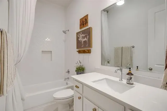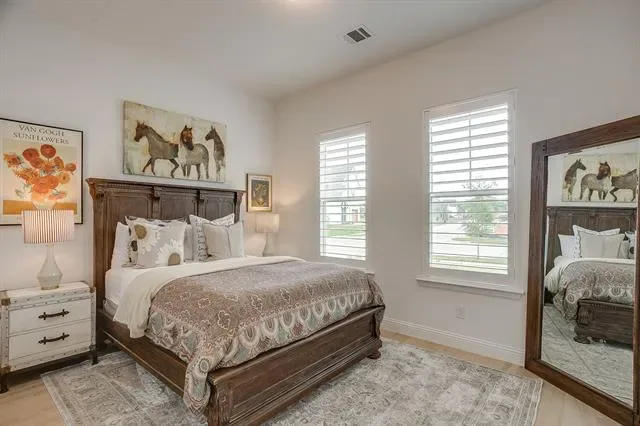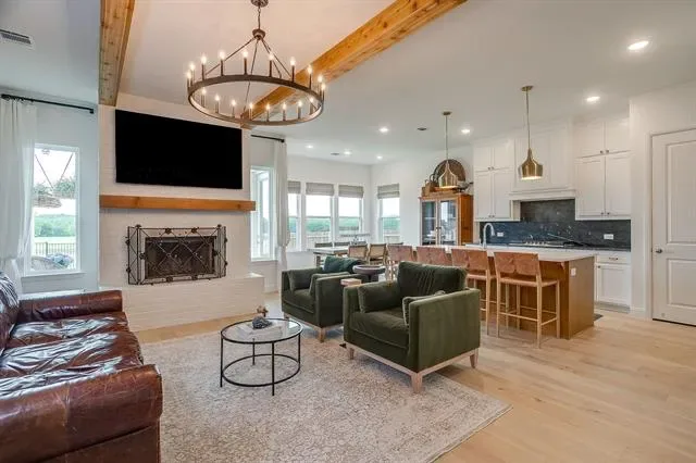 RARE OPPORTUNITY to own a lakefront home in the highly desirable Parks of Aledo community. This home was thoughtfully designed with high-end finishes and shows like new. It features a split floor plan with two bedrooms and a full bathroom at the front of the home, while the primary suite is tucked away in the back. The connected kitchen and living space will WOW you! The cozy living room is anchored by a brick fireplace, flanked by picture windows, with wood beams lining the ceiling. The kitchen boasts upgraded, ceiling-height cabinetry, double ovens, a built-in beverage refrigerator, and a beautiful oversized, white oak island. The upgrades are endless…designer tile in the bathrooms, white oak flooring, plus upgraded countertops, hardware, and lighting throughout. This home offers both luxury and low maintenance and sits on one of the most beautiful lots in all of Parker County with incredible sunset views!