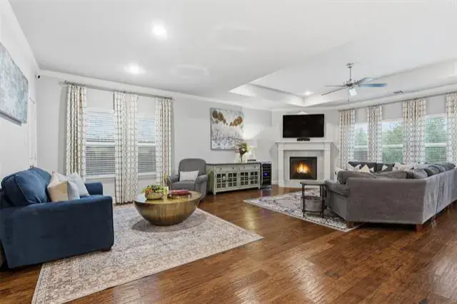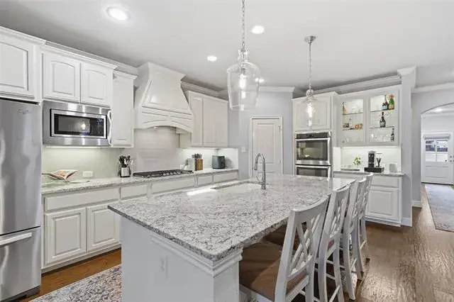 Nestled in the desirable Parks of Aledo community, this stunning 4 bedroom, 3.5-bath traditional-style home offers a perfect blend of comfort, elegance, and functionality. The gourmet kitchen is a chef’s delight, complete with granite countertops double oven, ample cabinetry, and a seamless flow into the dining and living spaces. The primary bedroom suite is conveniently located downstairs, offering privacy and comfort. With double vanities, tub, and walk in closet. Upstairs, you’ll find a versatile play area or game room along with 3 additional bedrooms and 2 baths, with plenty of space for guests. Step outside to enjoy the low maintenance turfed backyard that backs up to lush green space, creating a serene setting for outdoor living. This home combines thoughtful design, modern finishes, and a peaceful setting—truly a must-see in The Parks of Aledo
