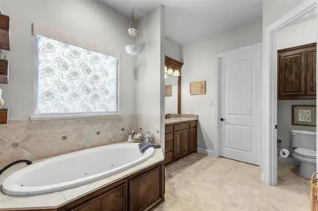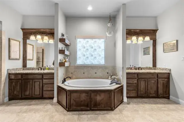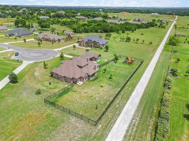 Horses allowed! Beautiful and functional 5-bedroom, 3.5-bath home situated on 2.2 acres in the highly sought after Aledo ISD, offering a perfect blend of luxury, comfort, and functionality. The added breezeway connects the main home to the new office suite, providing ample covered parking while enhancing the property''s overall style &' elegance. The kitchen highlights granite counters with a stone backsplash, tile floors, stainless steel appliances, tall cabinets with glass doors &' a large pantry. This spacious home features hand-scraped hardwood floors throughout the main living areas &' a functional open floor plan with tall ceilings, a stone fireplace, crown molding, ideal for everyday living &' entertaining &' room for everyone. The primary suite serves as a private retreat with tray ceilings with molding, dual vanities &' two walk-in closets, while two secondary bedrooms are connected by a Jack-and-Jill bathroom. A fourth bedroom with an en-suite bath is perfect for guests &' the fifth bedroom offers flexibility as an additional office or flex space. Utility room with cabinets &' granite counters. The dedicated media room provides a true home theater experience with an attached powder bathroom on the second floor. Outdoor living shines with a covered back porch featuring a wood burning fireplace-perfect for relaxing evenings or casual lounging, along with a wrought iron fenced backyard ideal for added privacy and enjoyment. The property also includes a separate office space with its own private entrance, ideal for remote work, craft room or a home-based business. This space is equipped with two dedicated 30-amp electrical services, zoned HVAC for IT equipment, private security access &' is pre-plumbed for a bathroom—offering potential for a secondary suite or multigenerational living. Situated on a roomy cul-de-sac, this property offers ample space for outdoor activities &' the opportunity to fully enjoy the beauty of the land.
