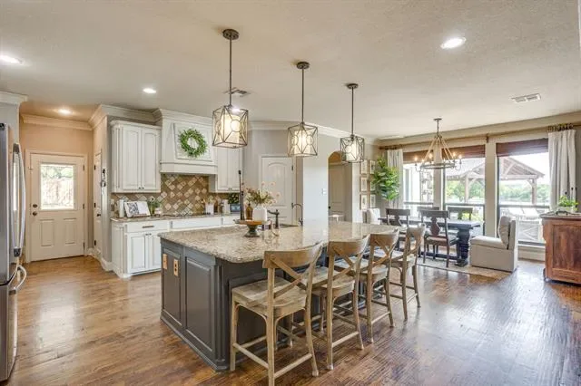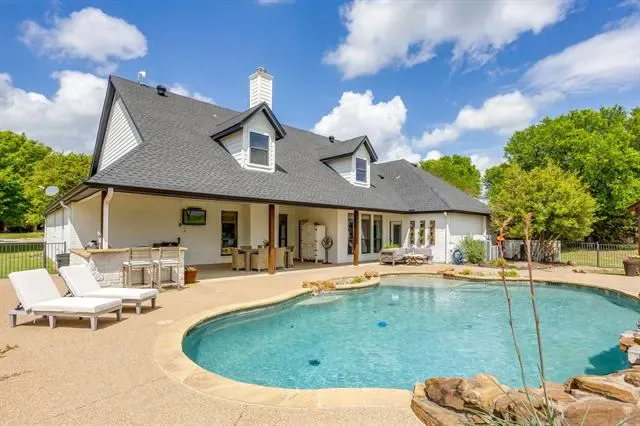 ISD! Situated on 1.28 acres in a private gated cul-de-sac, this 4-bed, 4-bath home blends elegance and comfort. Dream backyard with pool, peaceful pond views, outdoor kitchen, and pergola—perfect for entertaining. Gemstone lighting means no more hanging Christmas lights, plus premium SONOS outdoor sound. Inside features hand-scraped wood floors and a dedicated Christmas closet off the living room. No city taxes and no water bill! Walking distance to Aledo High School stadiums for Friday night football and baseball. Rare opportunity in a highly sought-after location! Sellers are offering a $2000 paint allowance and installing brand new carpet on Thursday, April 23.