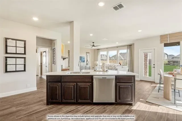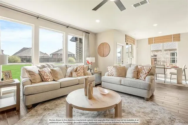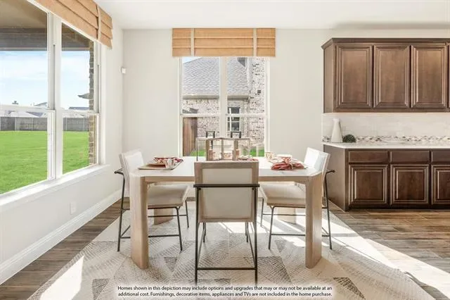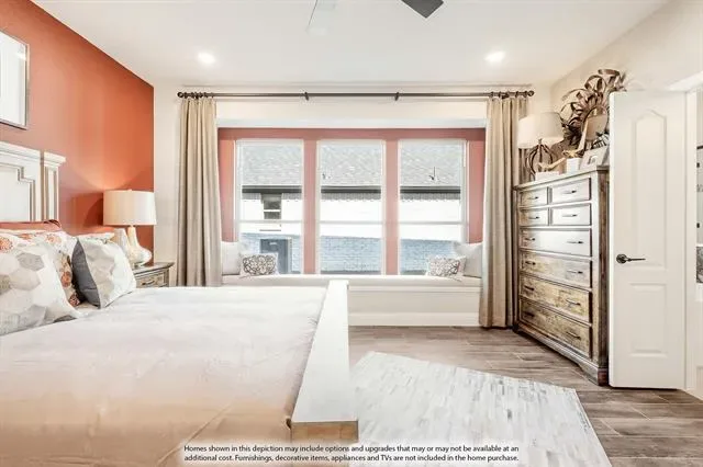 NEW! NEVER LIVED IN! Quick Close Available! This stunning 5-bedroom, 3.5-bathroom home with a 2-car garage by Bloomfield Homes blends exceptional style and everyday comfort in a spacious, modern layout designed for the way you live. From the moment you arrive, the show-stopping elevation and horizontal iron railings set the tone for elevated design. Step through the impressive 8'' front door into an open-concept layout where vaulted ceilings, rich wood flooring, and large windows with window coverings fill the home with natural light. Off the foyer, a flexible dining room doubles as an optional study, while the open family room anchors the main level with easy flow into the kitchen and breakfast area. The chef’s kitchen is a standout, showcasing custom cabinetry, upgraded granite countertops, a deep walk-in pantry, and an oversized island that connects seamlessly to the dining and family spaces—perfect for both daily meals and entertaining. Tucked at the rear, the first-floor primary suite offers privacy with a spa-inspired bath featuring dual sinks, an upgraded shower, and a large walk-in closet. A convenient powder bath and laundry room are also located downstairs. Upstairs, 4 secondary bedrooms are arranged around a spacious game room, with a Jack &' Jill bath connecting 2 bedrooms for added functionality and privacy, while the remaining bedrooms share a separate full bath. Each bath includes upgraded tile finishes for durability and style. Outdoor living is extended with an oversized covered patio complete with a gas stub for grilling, offering space to relax or entertain year-round. With high-end finishes, thoughtful upgrades, and a well-planned design that balances open gathering spaces with private retreats, the Dewberry III by Bloomfield Homes delivers the flexibility and comfort today’s homeowners need.