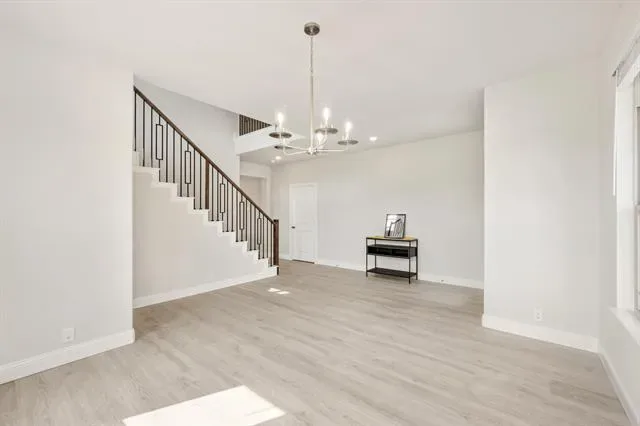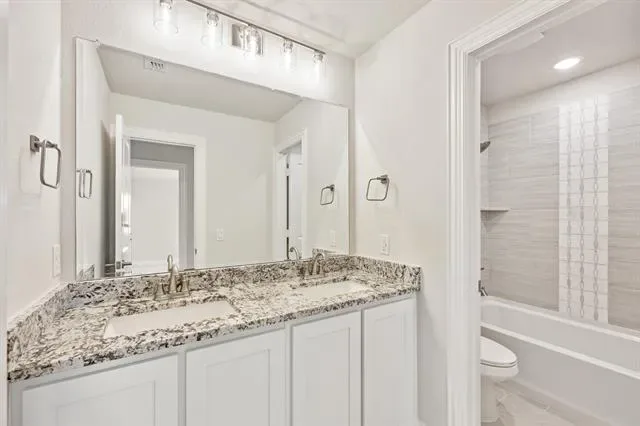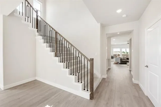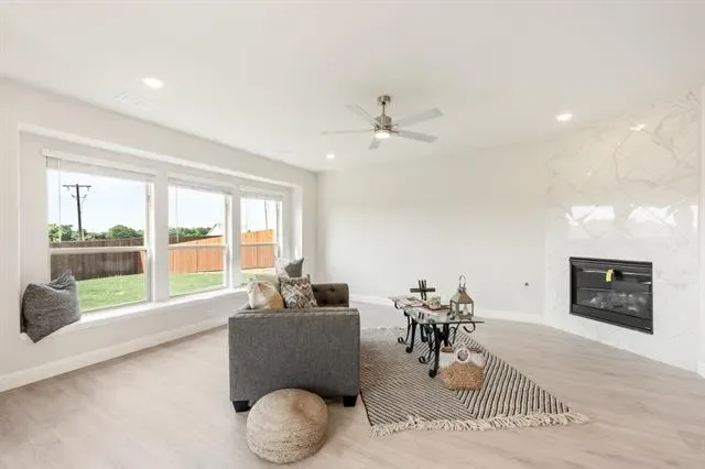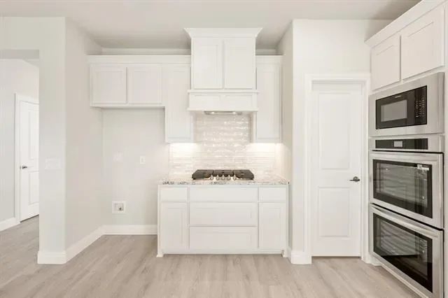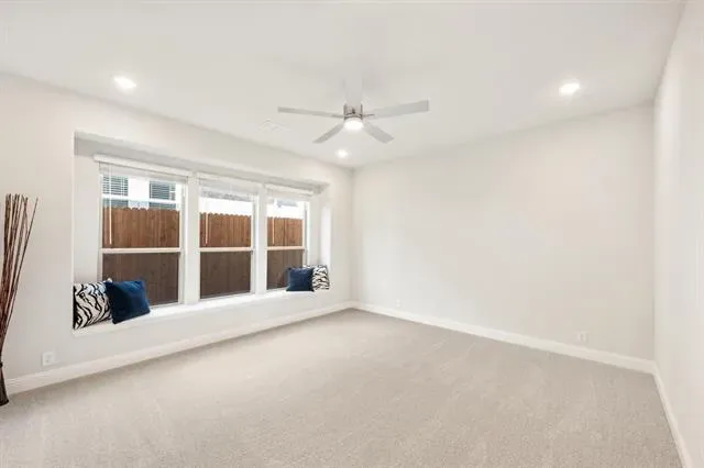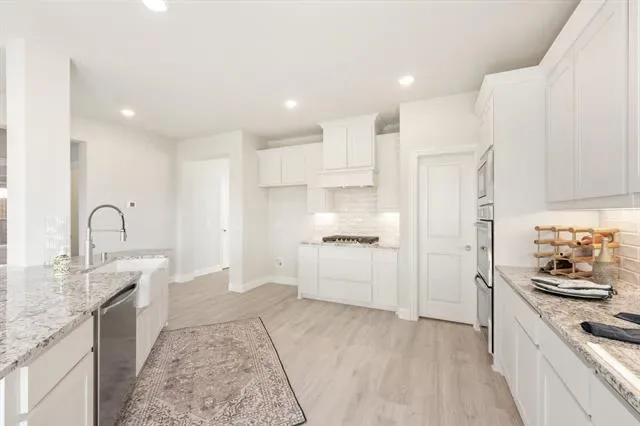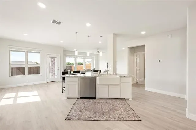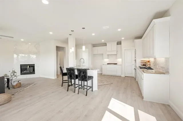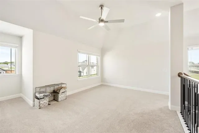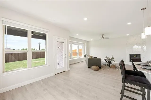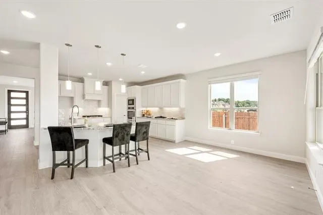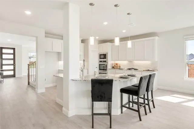 NEW! NEVER LIVED IN! Quick Close Available! This stunning 5-bedroom, 3.5-bathroom home with a 2-car garage by Bloomfield Homes blends exceptional style and everyday comfort in a spacious, modern layout designed for the way you live. From the moment you arrive, the show-stopping elevation and horizontal iron railings set the tone for elevated design. Step through the impressive 8'' front door into an open-concept layout where vaulted ceilings, rich wood flooring, and large windows with window coverings fill the home with natural light. Off the foyer, a flexible dining room doubles as an optional study, while the open family room anchors the main level with easy flow into the kitchen and breakfast area. The chef’s kitchen is a standout, showcasing custom cabinetry, upgraded granite countertops, a deep walk-in pantry, and an oversized island that connects seamlessly to the dining and family spaces—perfect for both daily meals and entertaining. Tucked at the rear, the first-floor primary suite offers privacy with a spa-inspired bath featuring dual sinks, an upgraded shower, and a large walk-in closet. A convenient powder bath and laundry room are also located downstairs. Upstairs, 4 secondary bedrooms are arranged around a spacious game room, with a Jack &' Jill bath connecting 2 bedrooms for added functionality and privacy, while the remaining bedrooms share a separate full bath. Each bath includes upgraded tile finishes for durability and style. Outdoor living is extended with an oversized covered patio complete with a gas stub for grilling, offering space to relax or entertain year-round. With high-end finishes, thoughtful upgrades, and a well-planned design that balances open gathering spaces with private retreats, the Bayberry III by Bloomfield Homes delivers the flexibility and comfort today’s homeowners need.