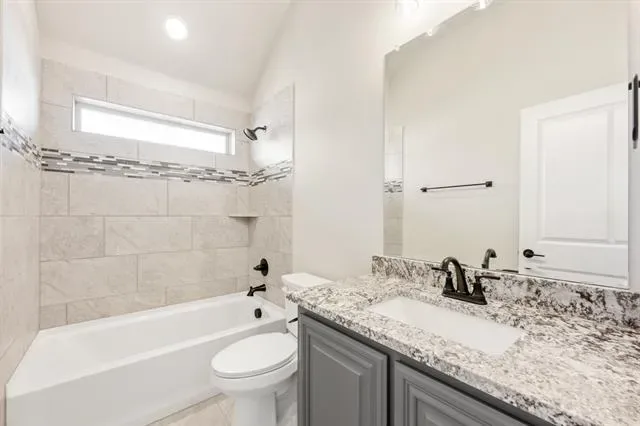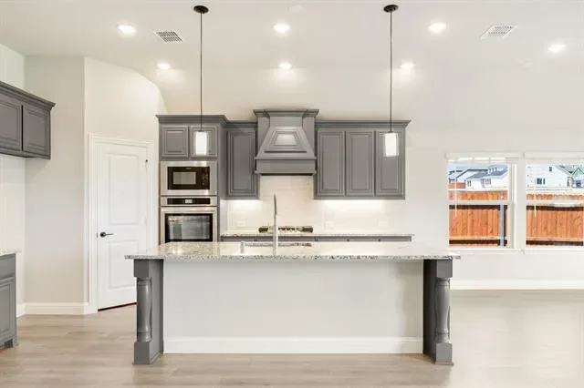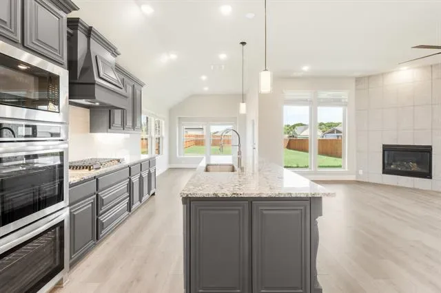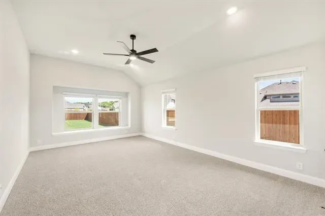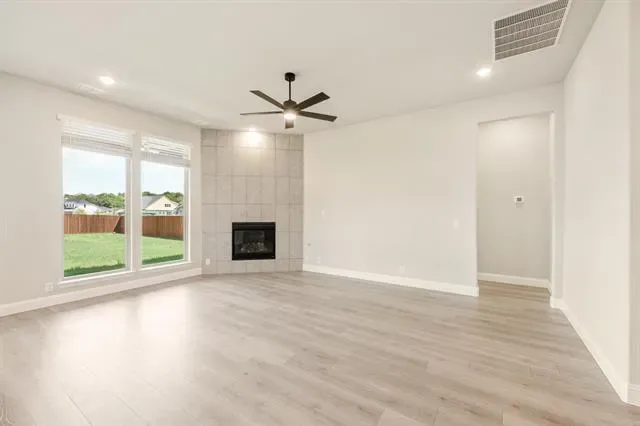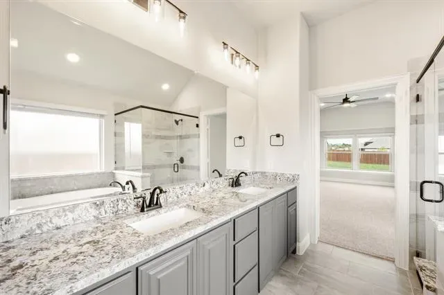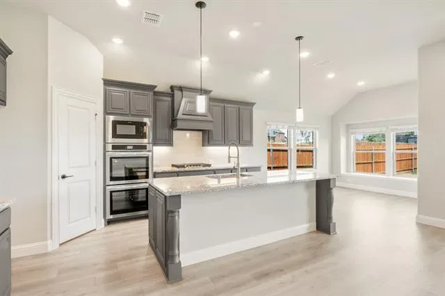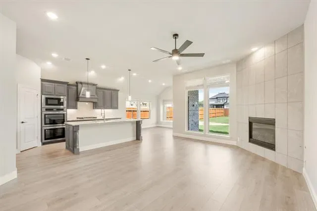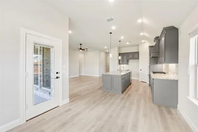 NEW! NEVER LIVED IN – Ready Now! This beautifully crafted 3-bedroom, 2-bathroom home with a 2-car garage by Bloomfield Homes offers timeless style and everyday comfort in a smart single-story layout. The gorgeous stone elevation and classic curb appeal welcome you with charm, while the elegant 8'' front door sets the tone for the high-end features inside. Step into a light-filled foyer with sightlines to the open family room, where rich laminate flooring runs through the main living areas and vaulted ceilings enhance the sense of space. At the front of the home, two spacious secondary bedrooms share a full bath tucked away for privacy, while a separate laundry room with added storage sits nearby for convenience. A private study is centrally located—perfect for working from home, hobbies, or quiet relaxation. The heart of the home is the chef’s kitchen, featuring quartz countertops, custom cabinetry, a gas cooktop, built-in oven, and a large island that overlooks the open family room and breakfast area. From there, sliding doors lead to a covered patio complete with a gas stub for grilling, ideal for hosting or winding down. Tucked at the back, the expansive primary suite offers a peaceful retreat with spa-inspired finishes, including dual sinks, a large shower, and a generous walk-in closet. Additional highlights include a tankless water heater, window coverings, and thoughtful storage throughout. With designer touches in every room and a layout that flows seamlessly from one space to the next, the Jasmine by Bloomfield Homes delivers both style and function in a home designed for modern living. Schedule your tour today!