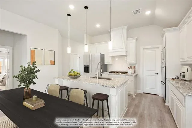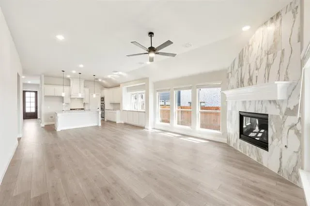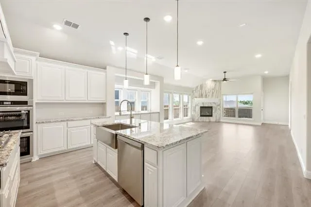 NEW &' NEVER LIVED IN – Ready for Move-In! Bloomfield Homes'' Cypress provides elevated one-story living in this spacious and stylish 3-bedroom, 2-bath Bloomfield home, thoughtfully designed with a dedicated office and versatile game room to meet all your lifestyle needs. From first glance, the brick and stone exterior, cedar garage doors, and bold 8’ front entry door set the stage for what’s inside. Step into an airy layout filled with natural light and upgraded finishes, where wood flooring flows through the main living areas and expansive sightlines connect each space with ease. At the heart of the home, the bright open-concept kitchen is built for both entertaining and everyday living. Enjoy gorgeous granite countertops, stunning cabinetry, stainless steel appliances, a gas cooktop, and a large center island overlooking the Family Room. With a walk-in pantry and casual dining area, there’s space for everything from morning coffee to hosting guests. The Primary Suite has a beautiful window seat perfect for relaxing, complete with a generous walk-in closet, separate shower, and soaking tub for a spa-like experience. Two secondary bedrooms and a full bath are located in their own wing, while the Game Room provides flex space for a second living area, home gym, or media zone. Additional highlights include window treatments, upgraded lighting, and thoughtfully placed storage throughout. Located in The Parks of Aledo, residents enjoy access to scenic greenbelts, a playground, disc golf, a dog park, and top-rated schools. This home blends smart design, timeless finishes, and modern comfort in one beautiful package. Come tour today and see the difference!