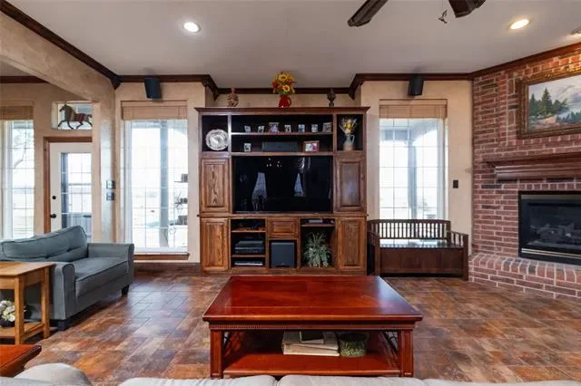 Perched atop its own private hill, this stunning West Hill Estates property offers nearly 7 acres of premier horse-ready living in highly sought-after Aledo ISD. Behind an electric gate, a private drive leads you to a breathtaking hilltop home with panoramic views that set the tone for this exceptional estate. Designed for both luxury and function, the pipe-fenced property is fully equipped for equestrian enthusiasts, featuring an arena, corral, stables, and tack room—bring your horses and ride from home. The residence spans over 4,000 square feet and welcomes you with a large covered front porch, perfect for morning coffee or taking in the serene views. Inside, soaring ceilings create a grand and inviting atmosphere. The spacious dining room flows seamlessly into the family room with a gas fireplace, ideal for entertaining. The chef’s kitchen is a true showpiece, complete with a 5-burner gas cooktop, double ovens, abundant cabinetry, walk-in pantry, oversized granite island, custom Italian Venecia sink, and a bright breakfast room overlooking the pool. The first-level primary suite is generously sized and offers a spa-like ensuite bath with heated flooring, an expansive walk-in shower, and dual granite vanities. Upstairs, you’ll find three additional bedrooms, two with ensuite baths, plus a versatile bonus room. An attached three-car garage provides ample parking, complemented by an expansive driveway. Above the garage, a private guest apartment offers its own kitchen, bedroom, bathroom, and yoga room, with cleverly tucked-away closets for optimal space. Outdoor living is truly remarkable, featuring sweeping views, a sparkling pool and spa, and the freedom to enjoy your horses on your own land. A John Deere tractor with front-end loader, box blade, seed spreader, and brush hog, along with a generator, will convey. There is also a storm shelter. This is a rare opportunity to own a luxurious hilltop equestrian estate in Aledo ISD.