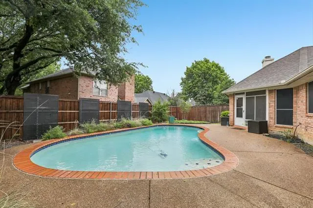 During warmer months, step outside into your private backyard oasis where a sparkling in-ground pool shines under the Texas sun, while an enclosed back patio offers the ideal place for a chance to reflect with your morning coffee.