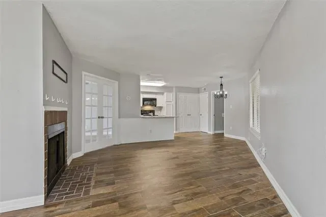 Inside, the bright open-concept layout is enhanced by abundant natural light, warm wood flooring, and a charming fireplace that creates a welcoming atmosphere. The kitchen has been tastefully updated with granite countertops, a decorative stone backsplash, a center island, a new microwave, and generous cabinet storage, making it perfect for everyday living or hosting guests.