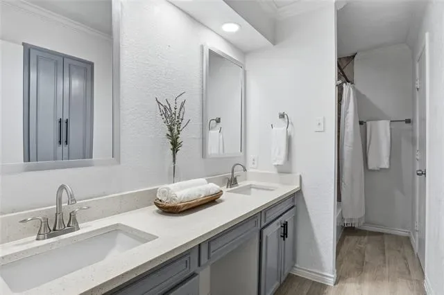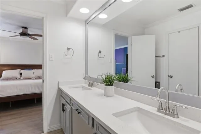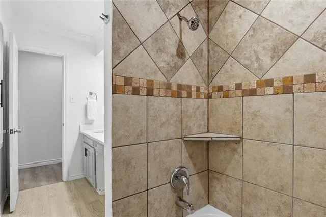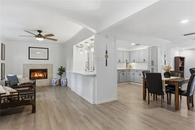 Well-maintained beauty in the heart of Arlington! So close to education and entertainment hubs of UTA, AT&T Stadium, and Globe Life Field. The brick and stone front welcomes you into this polished 3 bed, 2 bath home that has been nicely updated and is move-in ready! Two generous living areas and dining area open to a beautiful kitchen with crisp white quartz counters and tiled backsplash. Full size utility room is right off the kitchen and adjacent to the garage entry. Great bedroom sizes, and primary bedroom has an ensuite bath and large walk-in closet! Closets and storage space are ample throughout the entire home. Even the yard will impress as bigger than expected. The covered back patio makes a great place to have coffee and escape the sun. The list of upgraded finishes is extensive: LVP flooring throughout, ceiling fans and lots of recessed lighting, wood burning fireplace, stainless appliances, fully tiled baths with separate toilet areas, one car garage space, stone retaining wall in front yard. This house is terrific – come make it your reality!