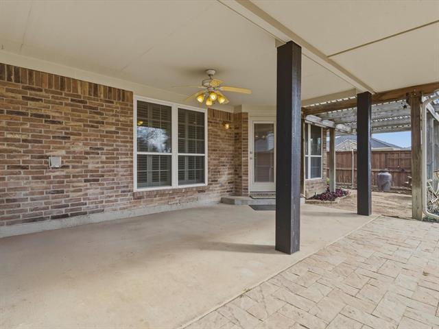 Move-in ready and full of charm, this inviting original owner single-story home sits on a desirable corner lot in Arlington and offers the perfect blend of comfort, style, and functionality. Mature trees and a welcoming covered front porch create beautiful curb appeal, while the side-facing garage enhances the home’s attractive exterior. A storm door adds both practicality and convenience. Inside, you’ll find warm wood flooring, elegant plantation shutters, crown molding, and neutral color tones that create a timeless and welcoming atmosphere throughout. The spacious central living area serves as the heart of the home, highlighted by a stunning floor-to-ceiling brick gas fireplace—perfect for cozy family evenings. The light and bright kitchen is designed for everyday living and entertaining, featuring oak cabinets, granite countertops, matching black appliances, a central island, pantry, and an eat-in dining area that makes gathering with family and friends easy. The primary suite offers a relaxing retreat with an elevated ceiling and stylish sliding barn door leading to the spacious ensuite bath. Enjoy a luxurious updated walk-in shower and a large walk-in closet complete with multiple built-in shelves for excellent storage and organization. Perfect for those needing ADA accommodations. Two additional bedrooms provide flexibility for family, guests, or a home office, while the secondary bathroom features a tub-shower combo and extended vanity. Step outside to your tranquil backyard where you can unwind or entertain under the covered patio or relax on the extended deck beneath the pergola—complete with a charming swing and irrigation system. With its thoughtful layout, inviting indoor spaces, and relaxing outdoor living areas, this home is ready to welcome its next family.