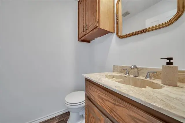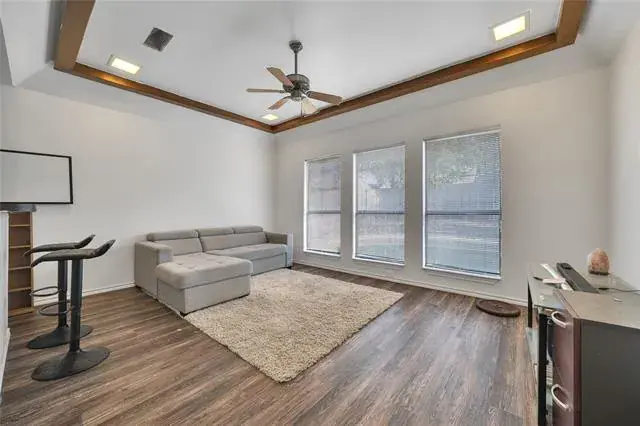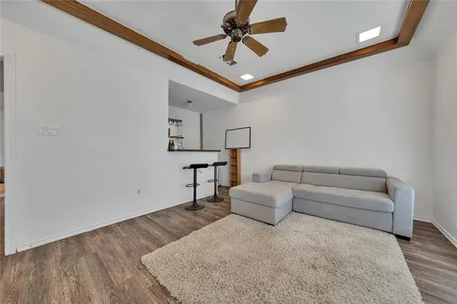 The no-carpet interior features stylish plank flooring that flows throughout the home. A formal dining room offers flexibility and can easily function as a home office or flex space. One of the home’s standout features is the bonus room with a wet bar, ideal for a media room, game room, office, or entertaining space.