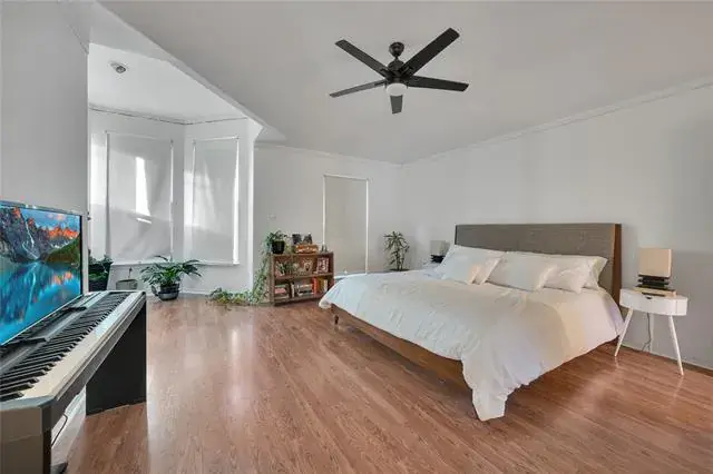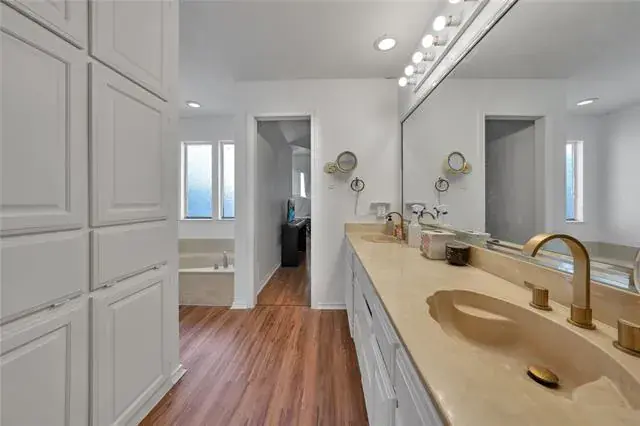 The primary suite is filled with abundant natural light and features a charming pop-out sitting area lined with windows. The ensuite bath includes a garden tub, separate walk-in shower, and a designer primary closet, offering both comfort and style.