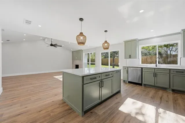 This home offers standout features rarely found in the surrounding area, including a custom fireplace, walk-in pantry, and a convenient interior utility room. The Owner’s Suite showcases a custom architectural accent wall, adding a unique designer touch. Updates can be seen throughout, highlighted by high-quality luxury vinyl plank flooring, nice tall baseboards, updated door hardware, and new ceiling fans for added comfort.