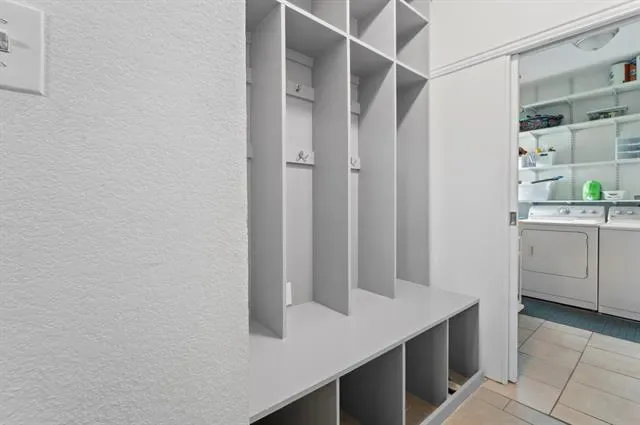 The extended laundry room with added storage and built-in mud area adds everyday convenience and organization.