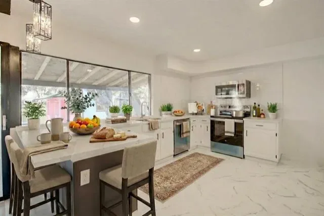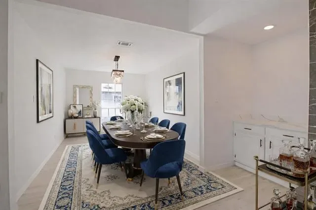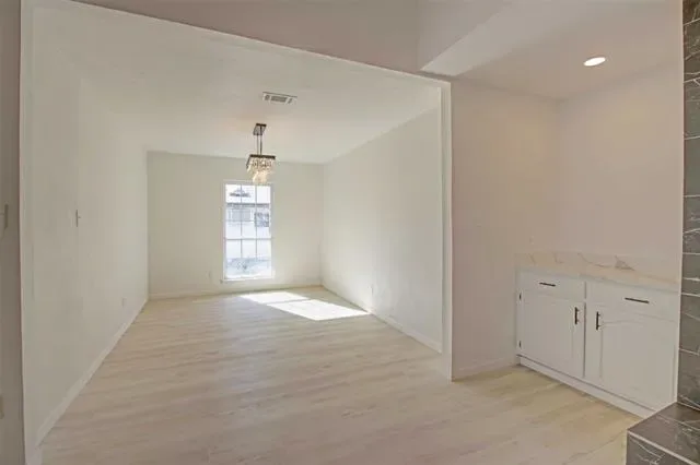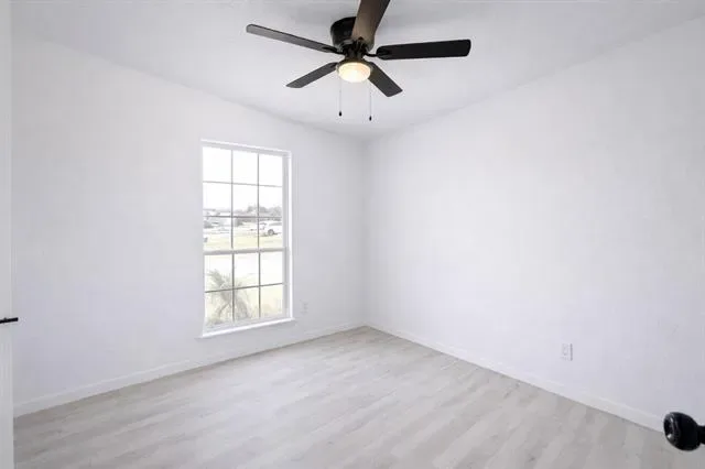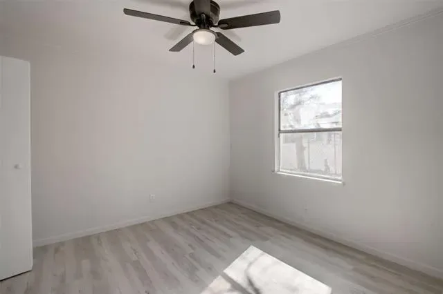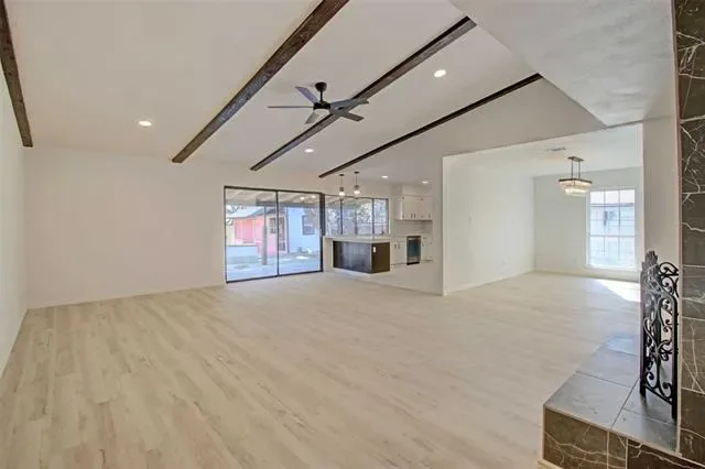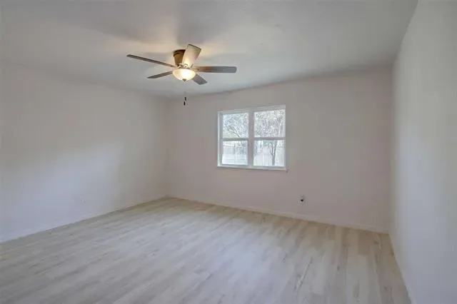 Absolutely stunning, fully renovated 4-bedroom, 2-bath home in the heart of Central Arlington! This beautifully updated residence offers 1 spacious living area and 1 dining area, showcasing a bright, open floor plan filled with natural light and dramatic vaulted ceilings. The inviting galley kitchen features a cozy eat-in area and opens seamlessly to the family room—perfect for everyday living and entertaining. Kitchen highlights include quartz countertops, designer tile backsplash, a Texas-sized sink, and stainless steel appliances. Both bathrooms are tastefully upgraded with quartz countertops, custom shower surrounds, and a luxurious walk-in shower in the primary suite. Additional updates include reinforced foundation, new laminate flooring throughout, and fresh interior and exterior paint. Step outside to enjoy the expansive covered patio and large backyard with a storage shed, ideal for entertaining, relaxing, or extra storage. Conveniently located near major highways, shopping, dining, and entertainment, this move-in-ready home perfectly blends modern elegance with everyday comfort. Truly a must-see!