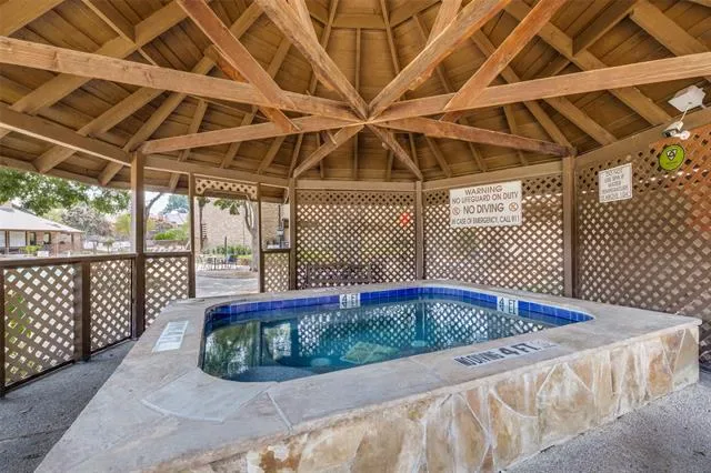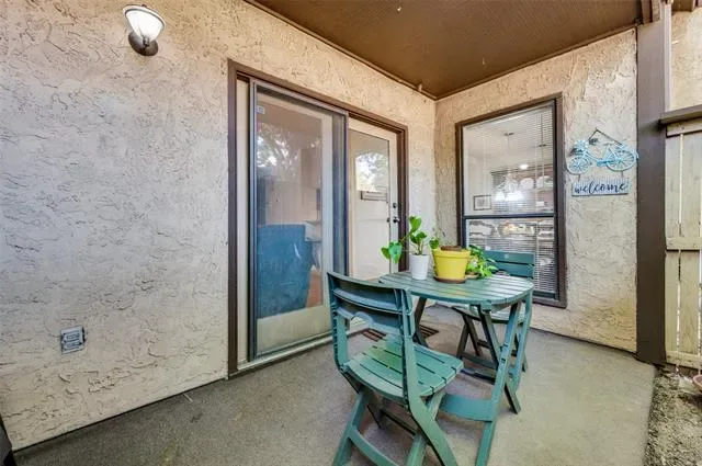 Fabulous Updated Ground Floor Corner Unit by Back Gate! Walk to Dining & Groceries! Perfect for Commuter, Lock n Leave, Parents or Sports Enthusiast! I-30, 183, 161, Globe Life & ATT Minutes Away! Seller ready to Sell! This darling home is ready to move into! Largest two bedroom offers an open plan with lots of windows, great kitchen with rich granite counters and storage for the cook! Separate dining is perfect for entertaining! Living room offers ample room for large pieces! Enjoy a cozy evening by the wood burning fireplace. Cute guest bath offers updated sleek shower tile, shower door, tiled flooring, commode and sink. Amazing Owners Suite boasts two closets, Oversized area for large furniture, office area or reading nook. The gorgeous ensuite bath boasts separate shower, lounging tub, private water closet and great counter space! Guest bedroom offers great closet space too! Rich laminate floors grace the entire home. Enjoy your coffee on the private patio with the morning sun peeking in. A large storage closet is a bonus! Utility closet in hall. The Cloisters offers so much! No reason to leave!! Exercise Room, Sauna, 3 Pools!, Jacuzzi, Indoor Racquetball, Game Area with Card Tables, Tennis Courts plus the community is Gated! HOA dues include Insurance for the Structure, On Site Manager, Ground Maintenance, Water, Sewage and Trash, Full use of Facilities, Pest Control, Landscaping. So much! Two reserved parking spots are yours! Take a tour of this inviting home today!
